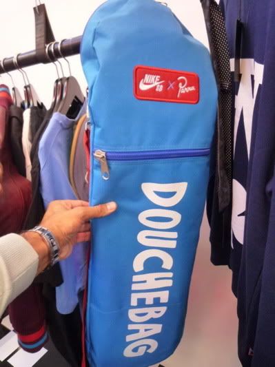 Parra is a artist who has been all over the place as of late and this just one of the pieces that he recently did with Nike SB the "Douche Bag" skate bag, hilarious and dope..